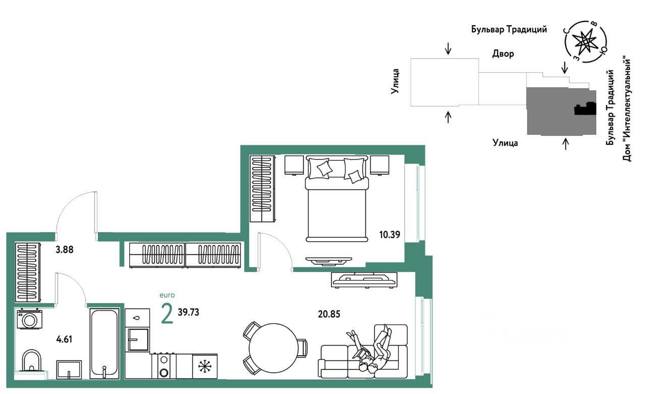 -Школа, зеленый сквер и пешеходный бульвар прямо внутри квартала