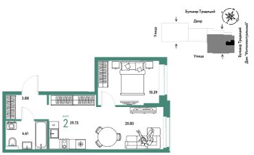 Продается 2комнатная квартира на 14 этаже от застройщика Страна Девелопмент. Площадь квартиры 39,73 кв. м.