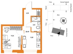 Продается 1комнатная квартира на 3 этаже от застройщика Страна Девелопмент. Площадь квартиры 28,49 кв. м.