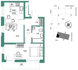 Продается 2комнатная квартира на 11 этаже от застройщика Страна Девелопмент. Площадь квартиры 50,82 кв. м.