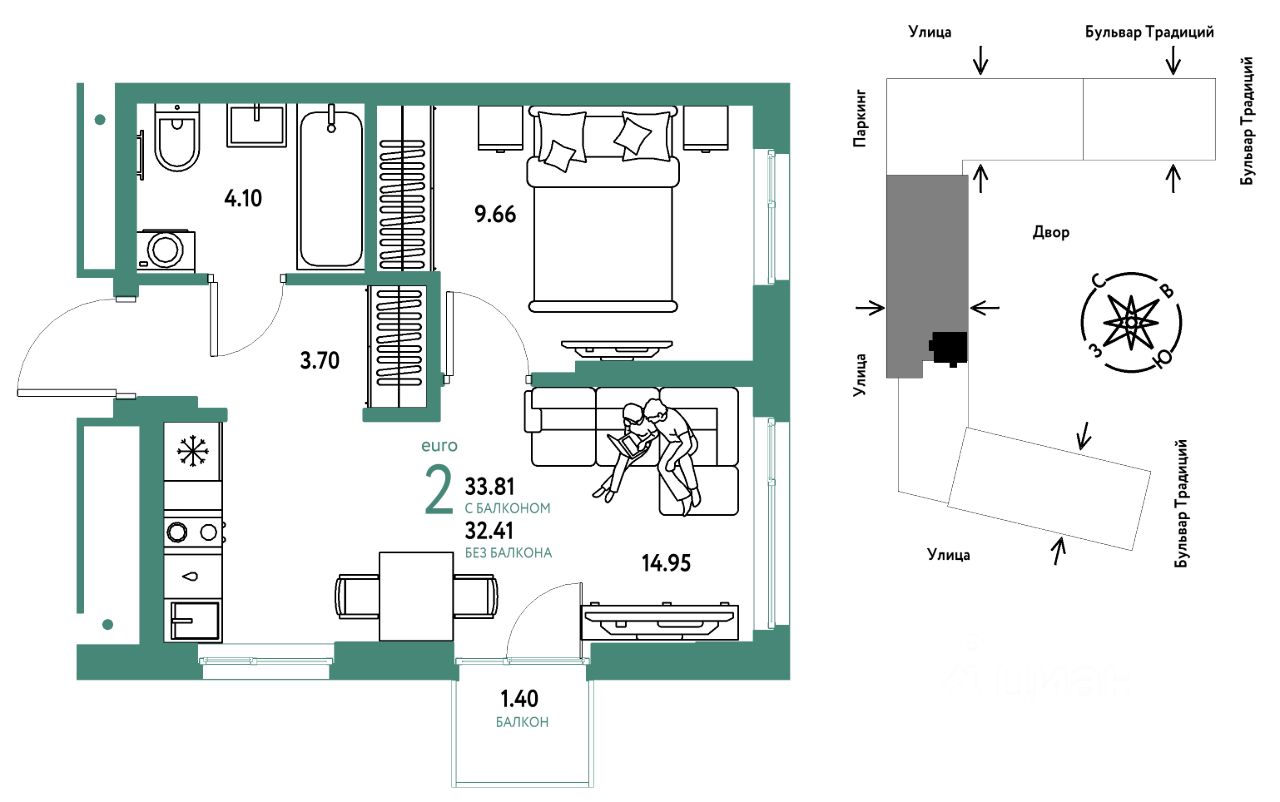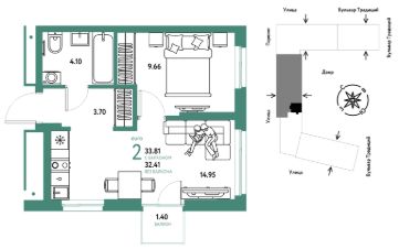 Продается 2комнатная квартира на 11 этаже от застройщика Страна Девелопмент. Площадь квартиры 33,81 кв. м.