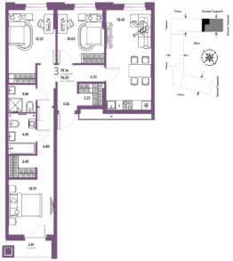 Продается 3комнатная квартира на 5 этаже от застройщика Страна Девелопмент. Площадь квартиры 79,14 кв. м.
