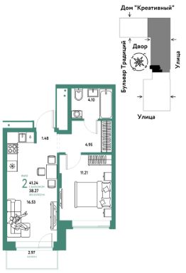 Продается 2комнатная квартира на 6 этаже от застройщика Страна Девелопмент. Площадь квартиры 41,24 кв. м.