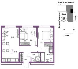 Продается 3комнатная квартира на 11 этаже от застройщика Страна Девелопмент. Площадь квартиры 58,42 кв. м.