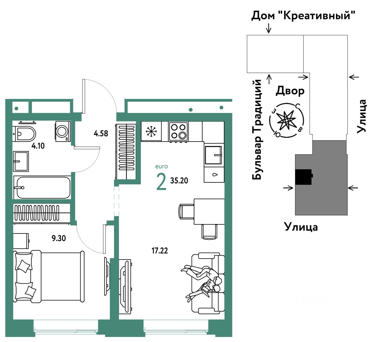 -Школа, зеленый сквер и пешеходный бульвар прямо внутри квартала