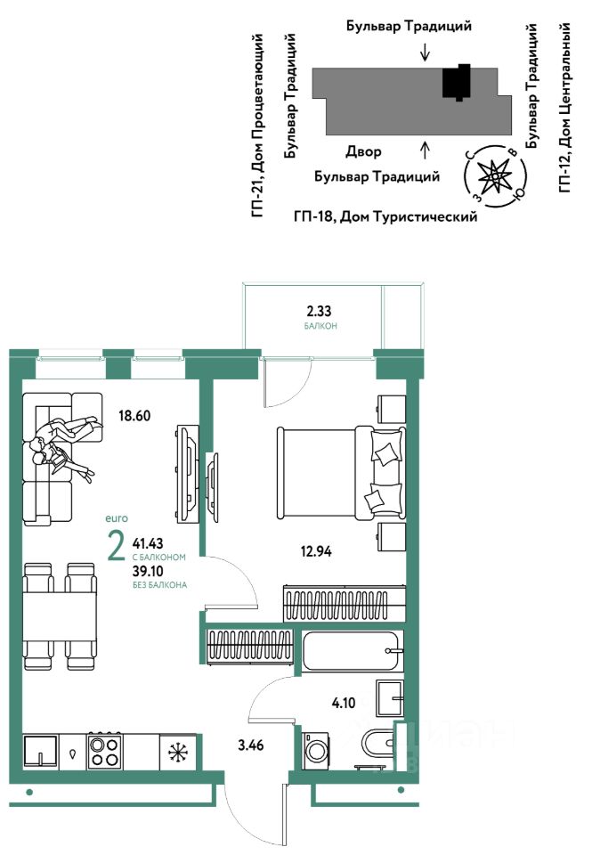 Продается 2комнатная квартира на 7 этаже от застройщика Страна Девелопмент. Площадь квартиры 41,43 кв. м.