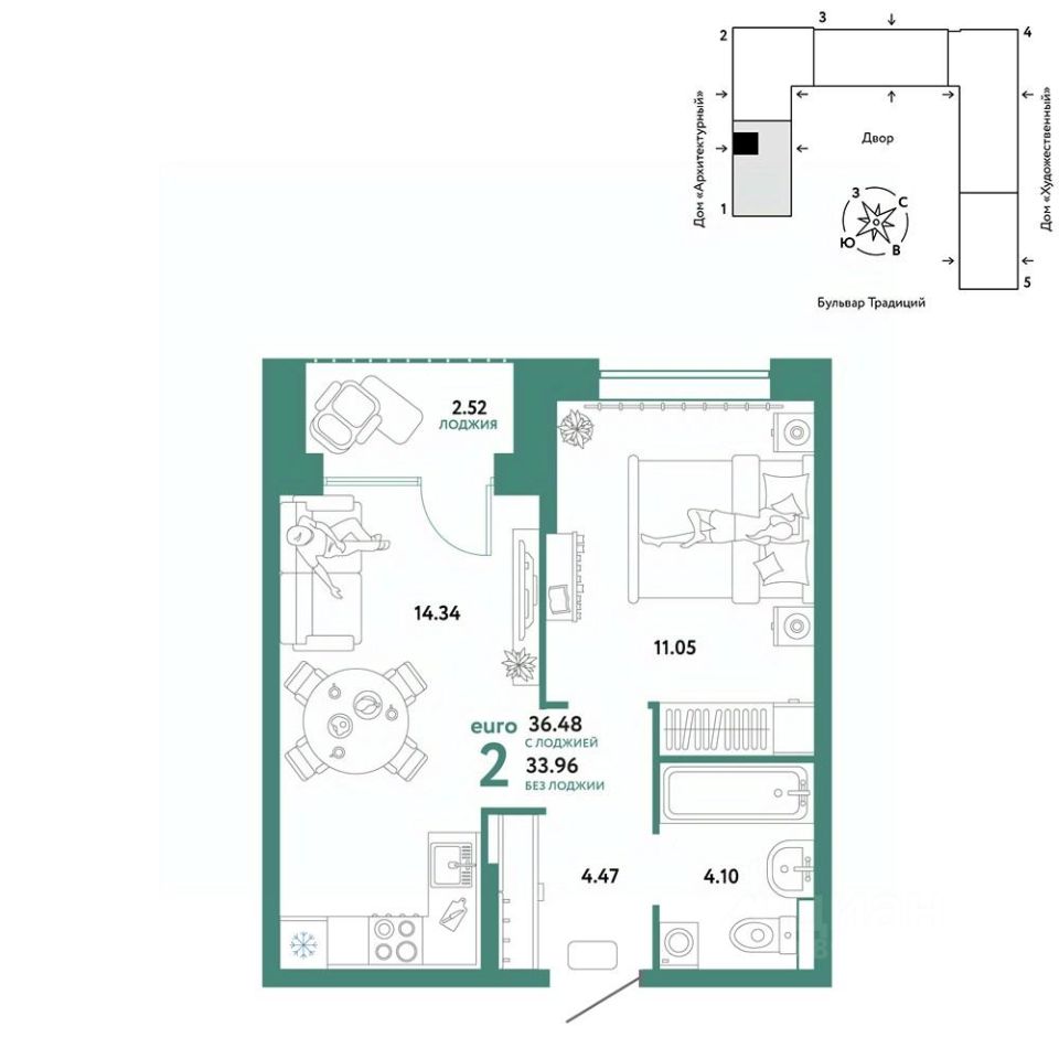 -Школа, зеленый сквер и пешеходный бульвар прямо внутри квартала