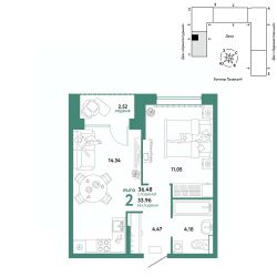 Продается 2комнатная квартира на 15 этаже от застройщика Страна Девелопмент. Площадь квартиры 36,48 кв. м.