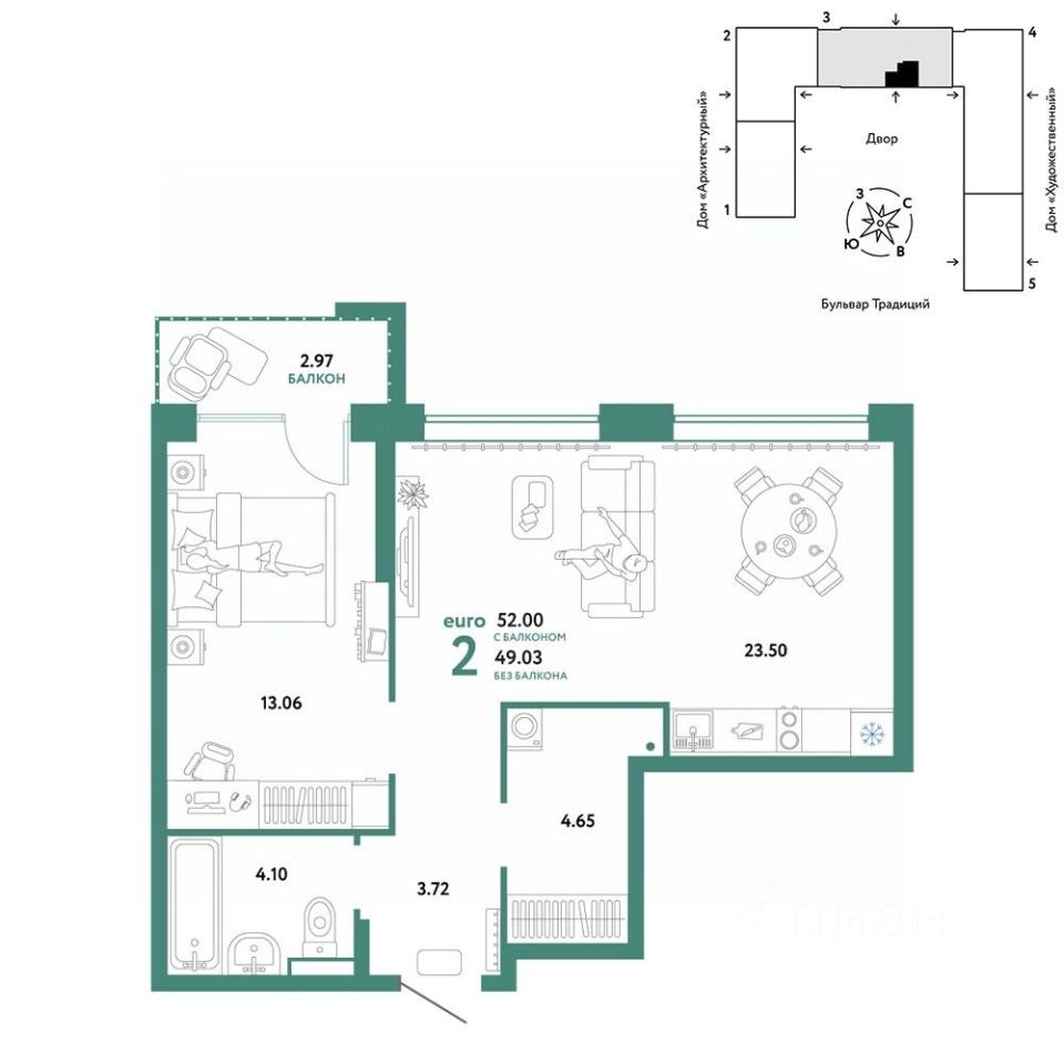 Продается 2комнатная квартира на 10 этаже от застройщика Страна Девелопмент. Площадь квартиры 52 кв. м.