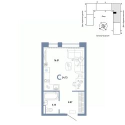 Продается 1комнатная квартира на 6 этаже от застройщика Страна Девелопмент. Площадь квартиры 24,73 кв. м.