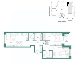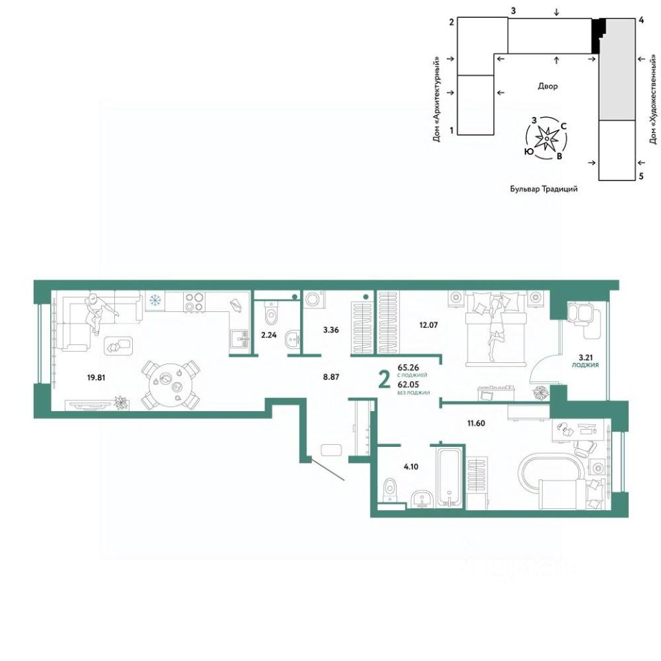 Продается 2комнатная квартира на 8 этаже от застройщика Страна Девелопмент. Площадь квартиры 65,26 кв. м.
