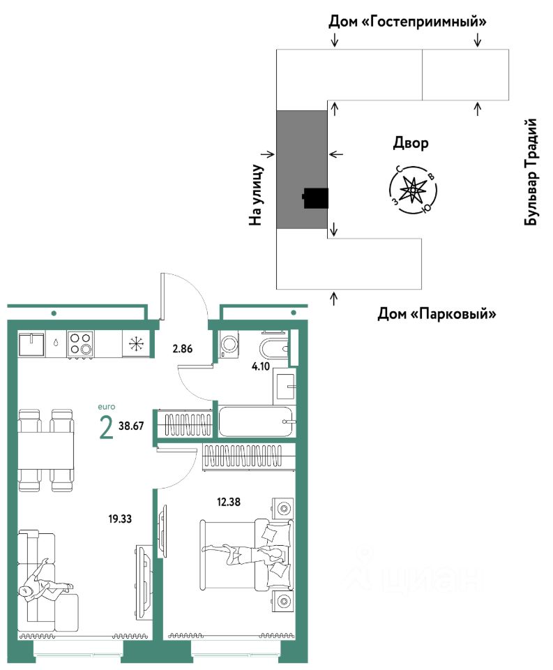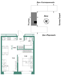 Продается 2комнатная квартира на 11 этаже от застройщика Страна Девелопмент. Площадь квартиры 38,67 кв. м.