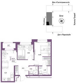 Продается 3комнатная квартира на 13 этаже от застройщика Страна Девелопмент. Площадь квартиры 56,79 кв. м.