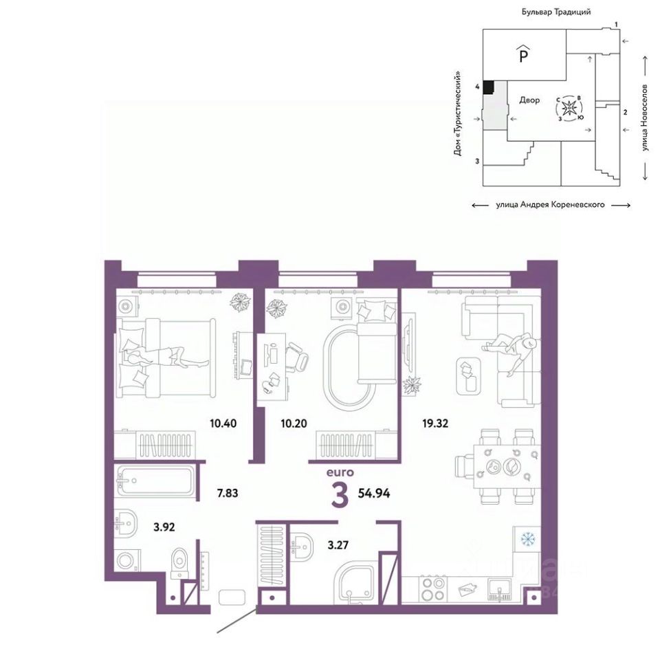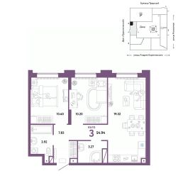 Продается 3комнатная квартира в новом микрорайоне "Домашний" в районе Московского тракта рядом с ТРЦ "Колумб". Общая площадь квартиры 54,94 кв. м. Сдача — в 4 квартале 2024 года.