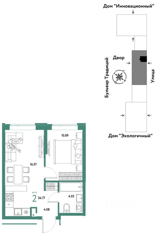 Продается 2комнатная квартира на 11 этаже от застройщика Страна Девелопмент. Площадь квартиры 34,77 кв. м.
