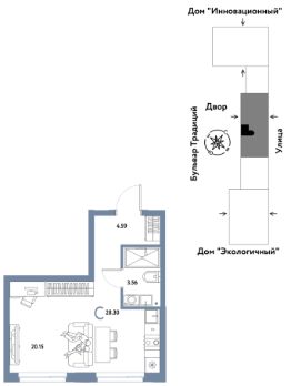 Продается 1комнатная квартира на 14 этаже от застройщика Страна Девелопмент. Площадь квартиры 28,3 кв. м.