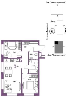 Продается 3комнатная квартира на 5 этаже от застройщика Страна Девелопмент. Площадь квартиры 57,75 кв. м.