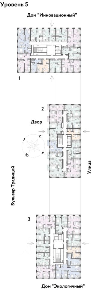 Внутри микрорайона появится огромный пешеходный бульвар — бульвар Традиций. Центром притяжения станут открытые пространства для отдыха жителей и гостей микрорайона, которые легко меняются под сезонные сценарии отдыха: новогодняя елка, ярмарки, кинопоказы и т.д.