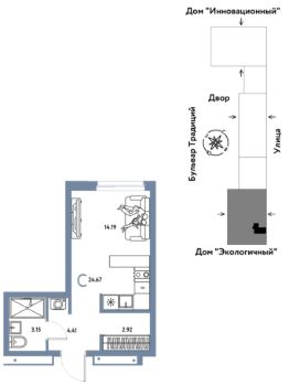 Продается 1комнатная квартира на 12 этаже от застройщика Страна Девелопмент. Площадь квартиры 24,67 кв. м.