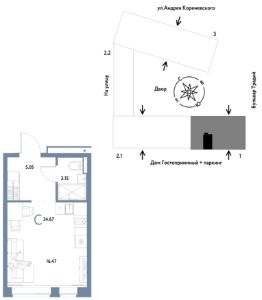 Продается 1комнатная квартира на 2 этаже от застройщика Страна Девелопмент. Площадь квартиры 24,67 кв. м.