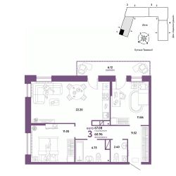 Продается 3комнатная квартира на 3 этаже от застройщика Страна Девелопмент. Площадь квартиры 67,08 кв. м.