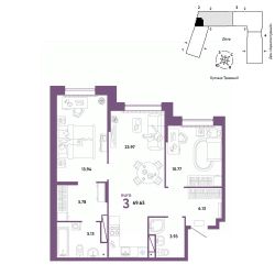 Продается 3комнатная квартира на 7 этаже от застройщика Страна Девелопмент. Площадь квартиры 69,65 кв. м.
