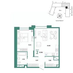 Продается 2комнатная квартира на 7 этаже от застройщика Страна Девелопмент. Площадь квартиры 51,9 кв. м.
