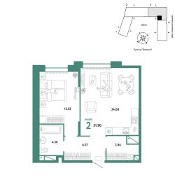 Продается 2комнатная квартира на 8 этаже от застройщика Страна Девелопмент. Площадь квартиры 51,9 кв. м.