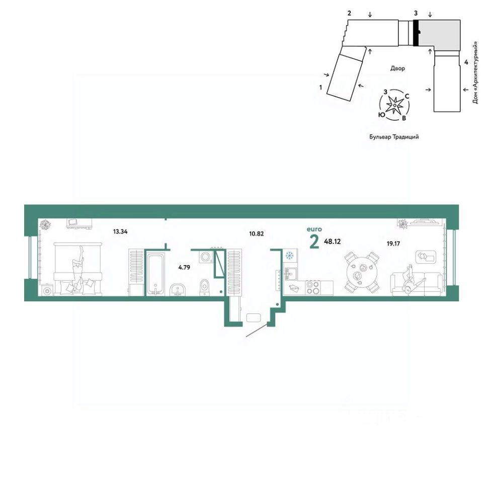 Продается 2комнатная квартира на 11 этаже от застройщика Страна Девелопмент. Площадь квартиры 48,12 кв. м.