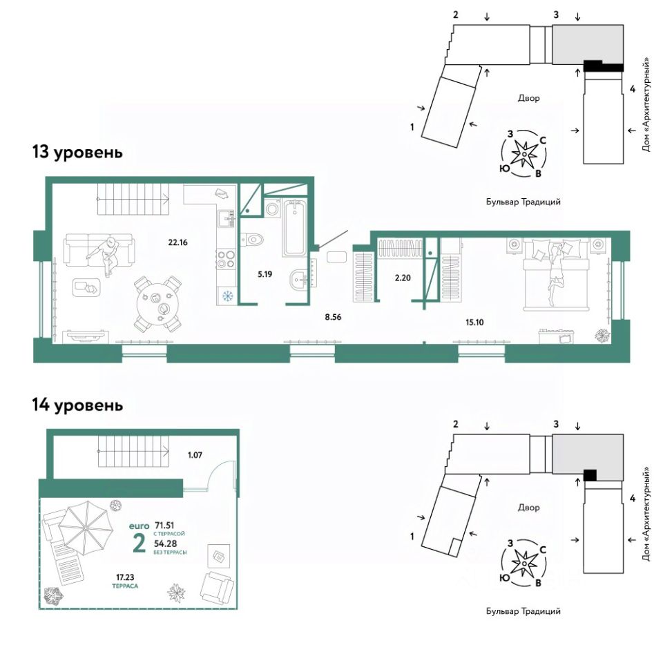 Продается 2комнатная квартира на 13 этаже от застройщика Страна Девелопмент. Площадь квартиры 71,51 кв. м.