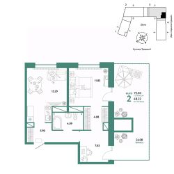 Продается 2комнатная квартира на 14 этаже от застройщика Страна Девелопмент. Площадь квартиры 72,3 кв. м.