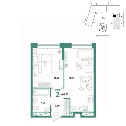 Продается 2комнатная квартира на 10 этаже от застройщика Страна Девелопмент. Площадь квартиры 40,07 кв. м.