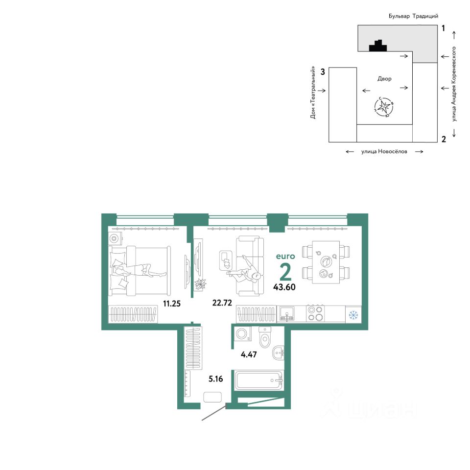 Продается 2комнатная квартира в новом микрорайоне "Домашний" в районе Московского тракта рядом с ТРЦ "Колумб". Общая площадь квартиры 43,6 кв. м. Сдача — в 4 квартале 2024 года.