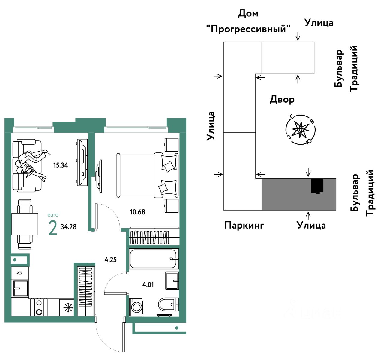 Продается 2комнатная квартира на 7 этаже от застройщика Страна Девелопмент. Площадь квартиры 34,28 кв. м.