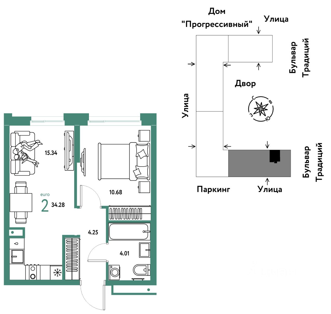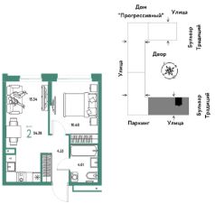 Продается 2комнатная квартира на 9 этаже от застройщика Страна Девелопмент. Площадь квартиры 34,28 кв. м.
