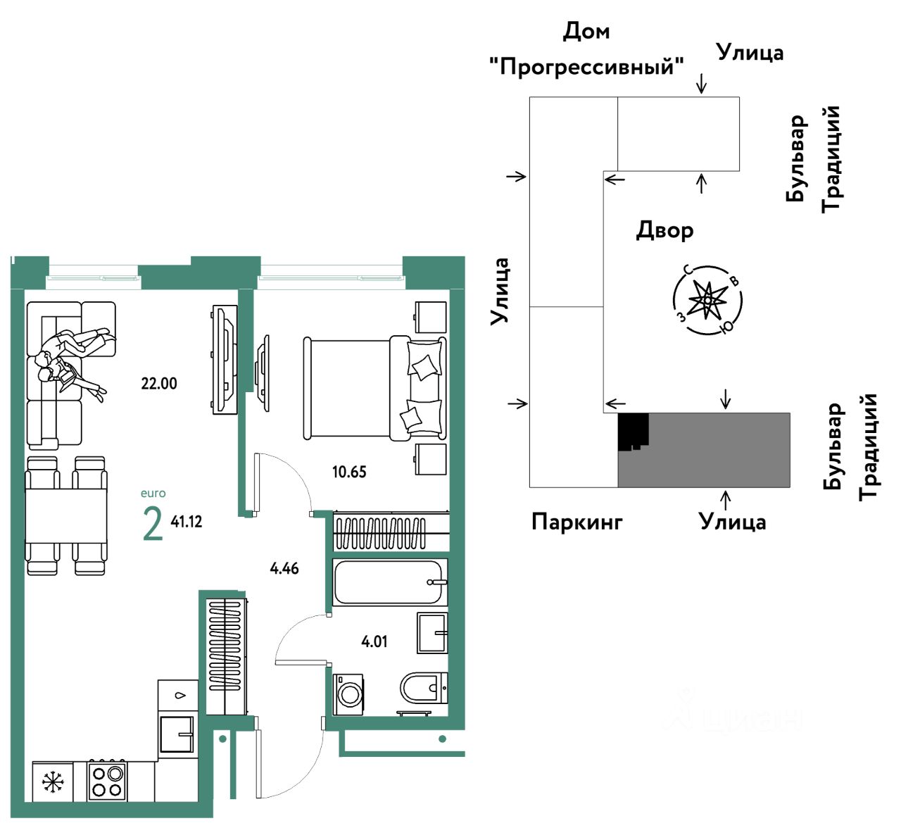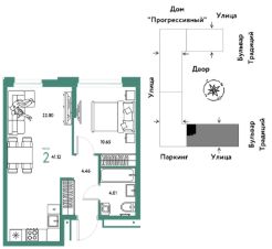 Продается 2комнатная квартира на 11 этаже от застройщика Страна Девелопмент. Площадь квартиры 41,12 кв. м.