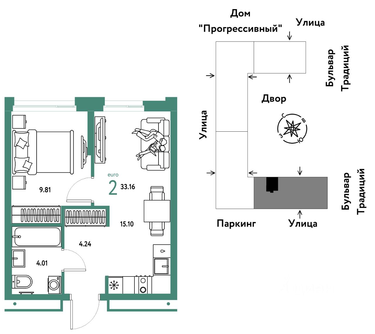 Продается 2комнатная квартира на 12 этаже от застройщика Страна Девелопмент. Площадь квартиры 33,16 кв. м.