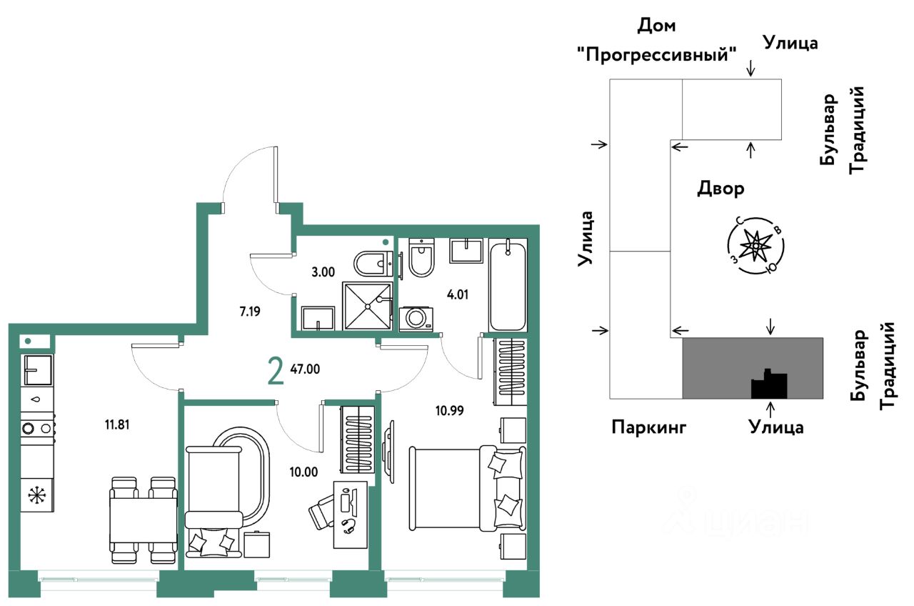 Продается 2комнатная квартира на 14 этаже от застройщика Страна Девелопмент. Площадь квартиры 47 кв. м.