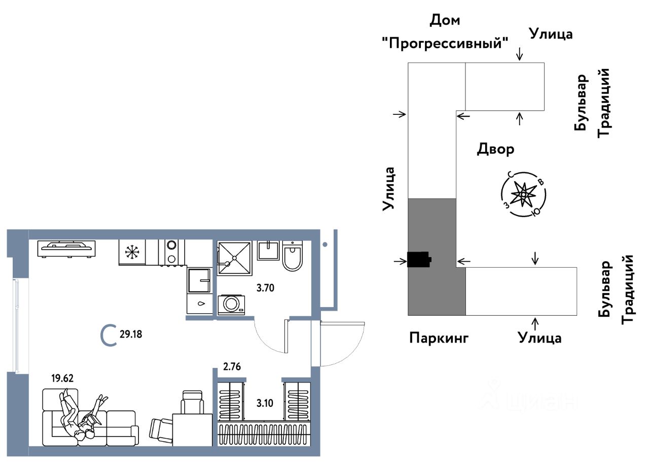 Продается 1комнатная квартира на 10 этаже от застройщика Страна Девелопмент. Площадь квартиры 29,18 кв. м.