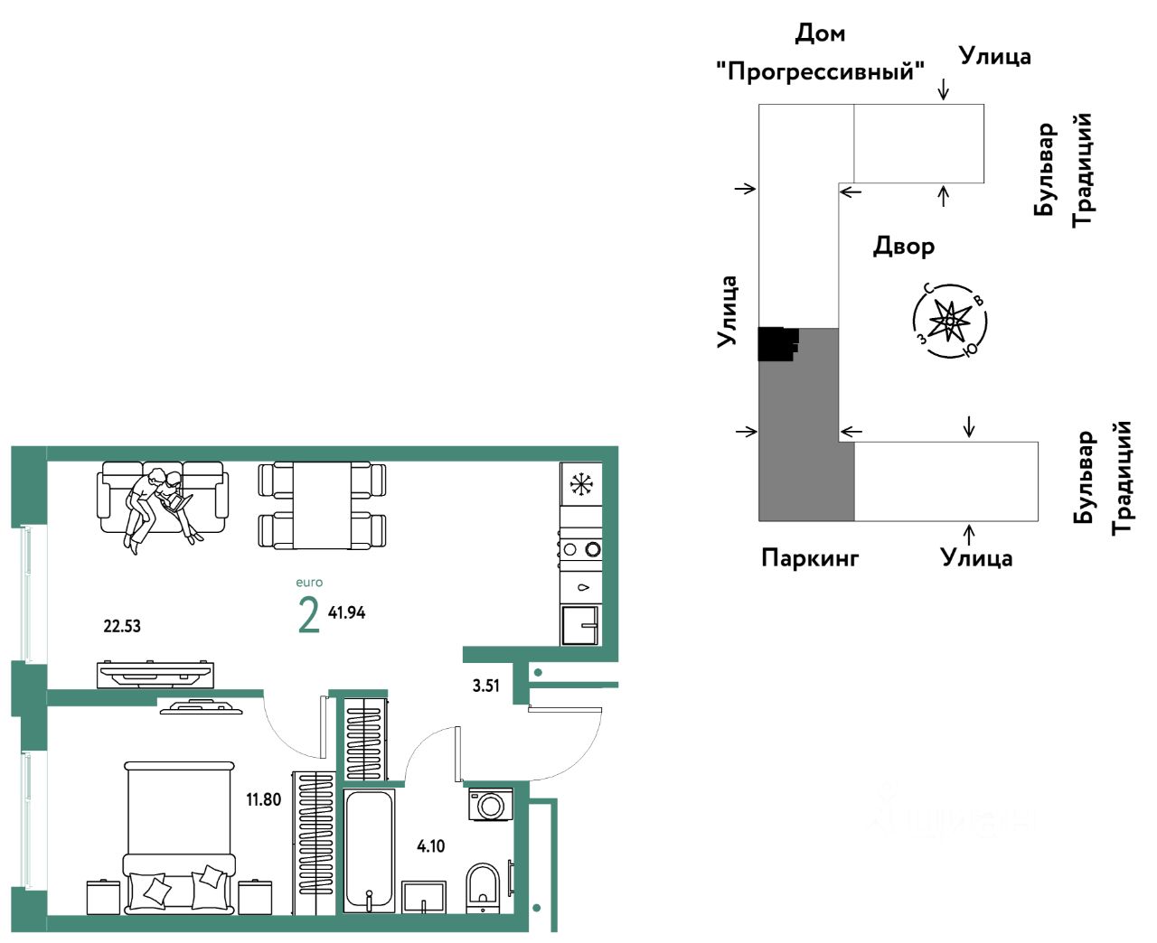Продается 2комнатная квартира на 12 этаже от застройщика Страна Девелопмент. Площадь квартиры 41,94 кв. м.