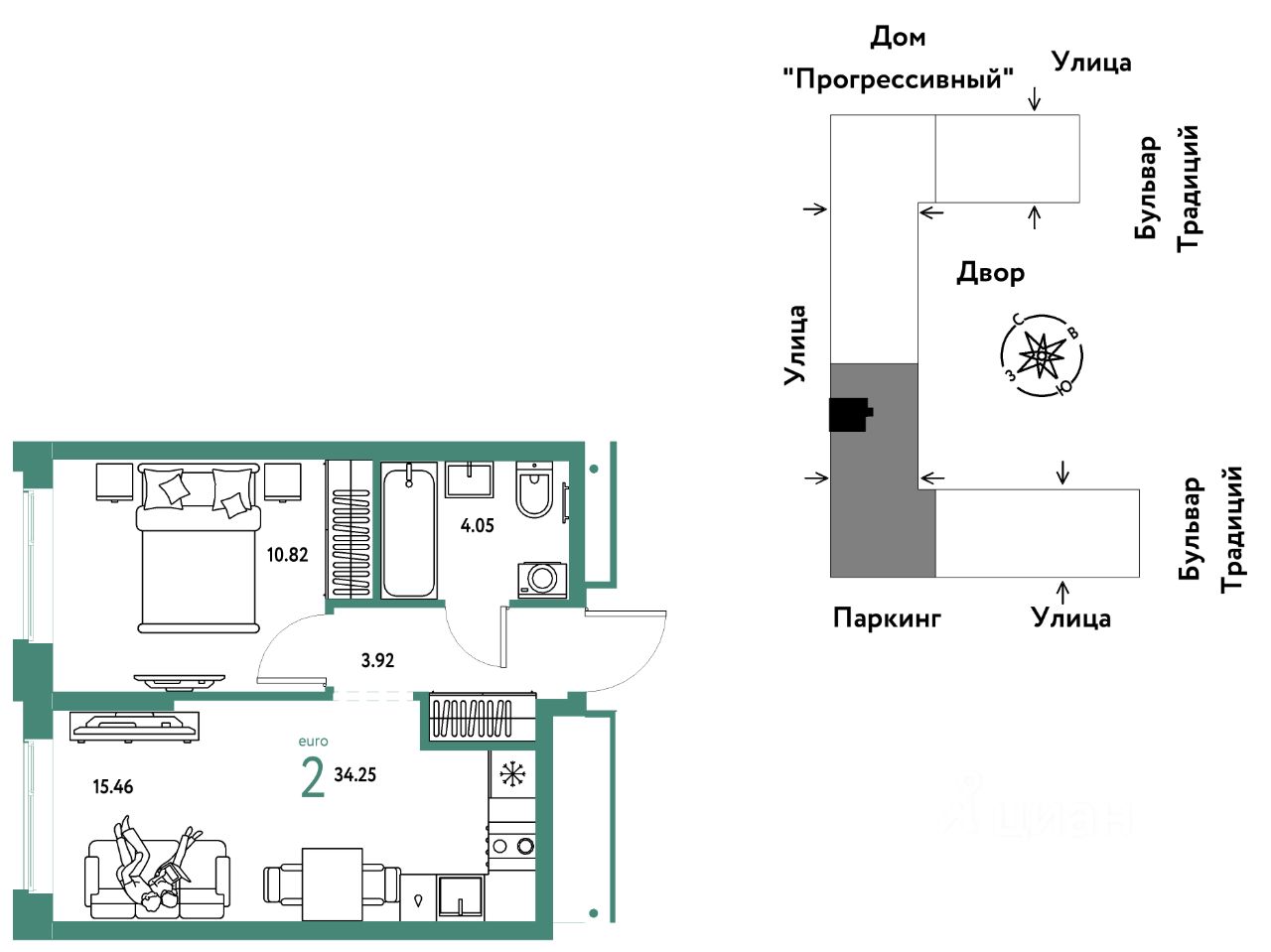 Продается 2комнатная квартира на 14 этаже от застройщика Страна Девелопмент. Площадь квартиры 34,25 кв. м.