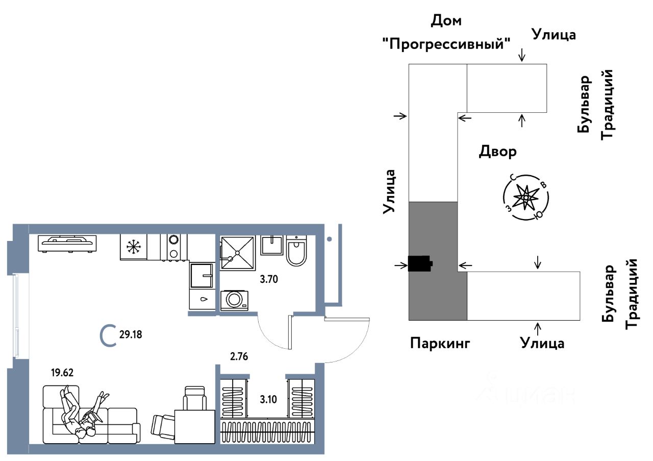 Продается 1комнатная квартира на 15 этаже от застройщика Страна Девелопмент. Площадь квартиры 29,18 кв. м.