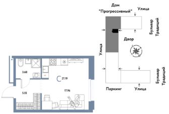 Продается 1комнатная квартира на 7 этаже от застройщика Страна Девелопмент. Площадь квартиры 27,19 кв. м.