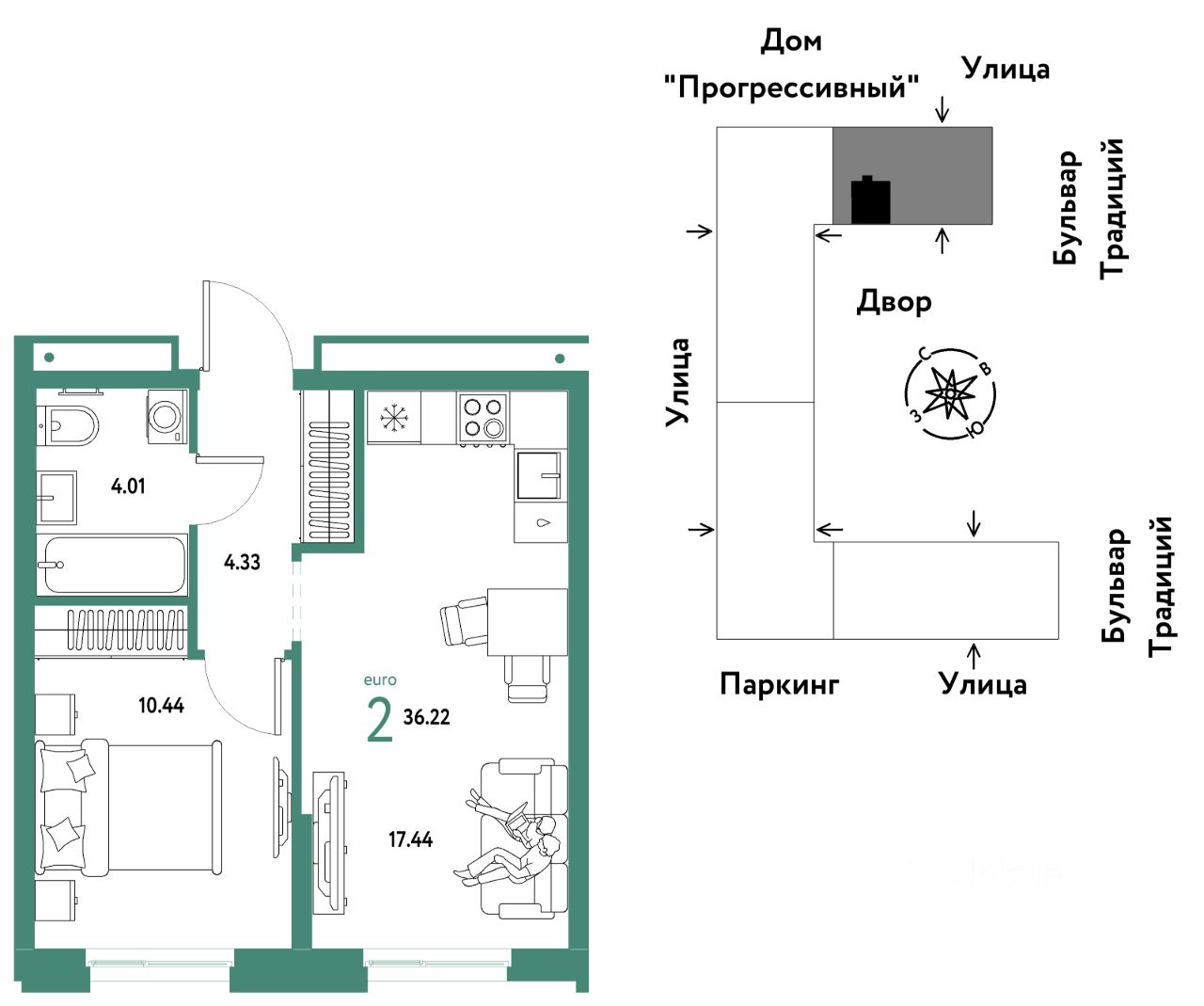 -Школа, зеленый сквер и пешеходный бульвар прямо внутри квартала