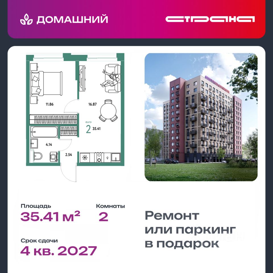 Новая квартира в ЖК "Домашний" напрямую от федеральной группы компаний "Страна Девелопмент". Финансовый партнер — банк "ДОМ.РФ".
