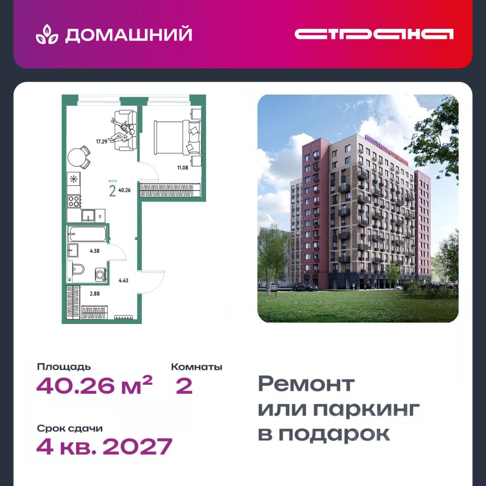 Новая квартира в ЖК "Домашний" напрямую от федеральной группы компаний "Страна Девелопмент". Финансовый партнер — банк "ДОМ.РФ".