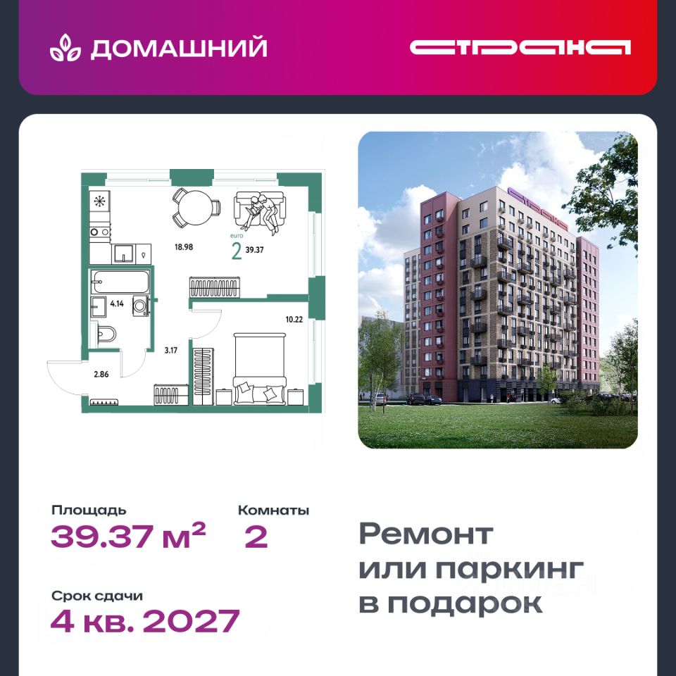 Новая квартира в ЖК "Домашний" напрямую от федеральной группы компаний "Страна Девелопмент". Финансовый партнер — банк "ДОМ.РФ".