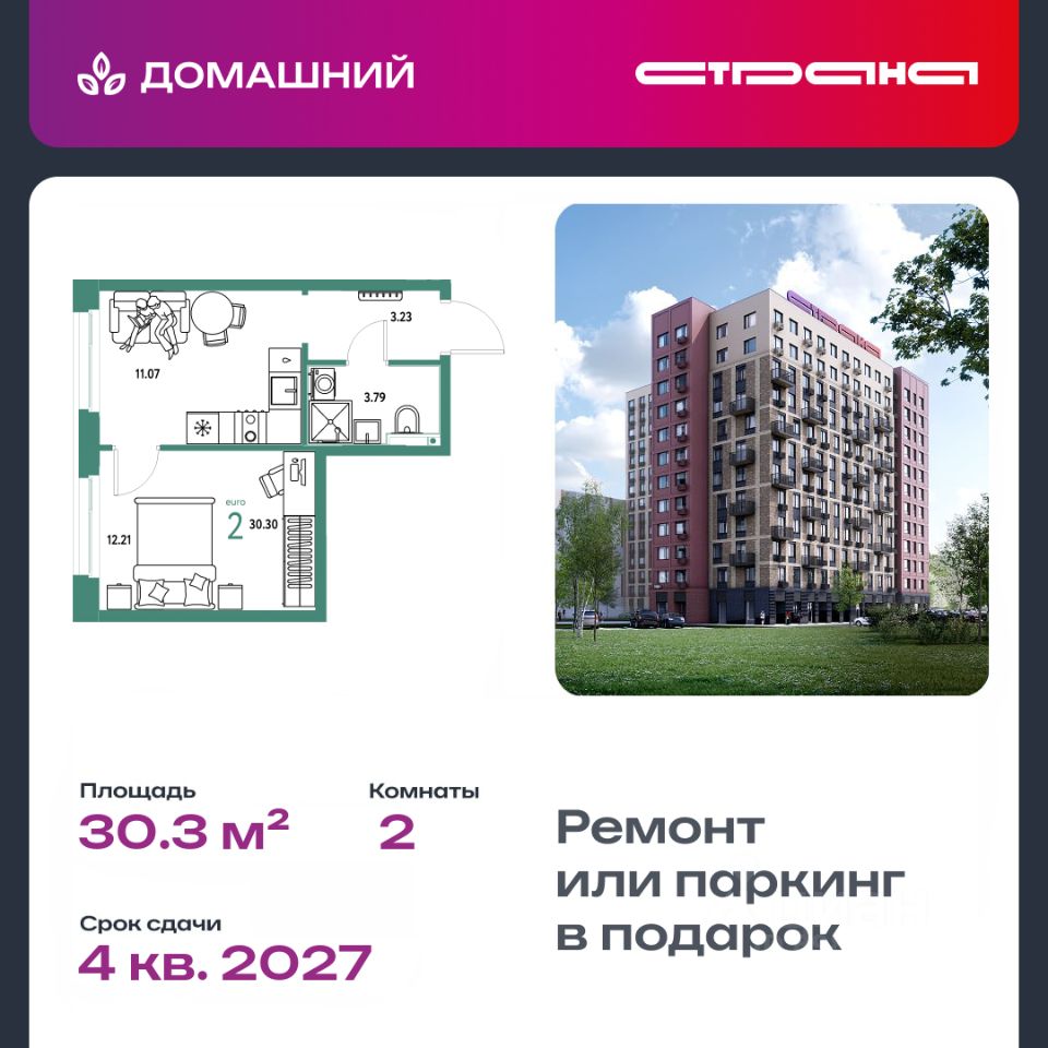 Новая квартира в ЖК "Домашний" напрямую от федеральной группы компаний "Страна Девелопмент". Финансовый партнер — банк "ДОМ.РФ".
