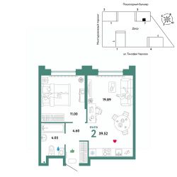 Продается 2комнатная квартира от застройщика "Страна Девелопмент". Стоимость указана без учета акций. Квартира на 27 этаже, площадь квартиры 39,52 кв. м. Сдача — в 3 квартале 2025 года.