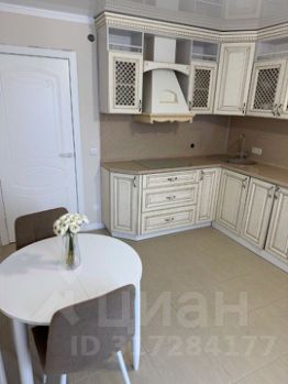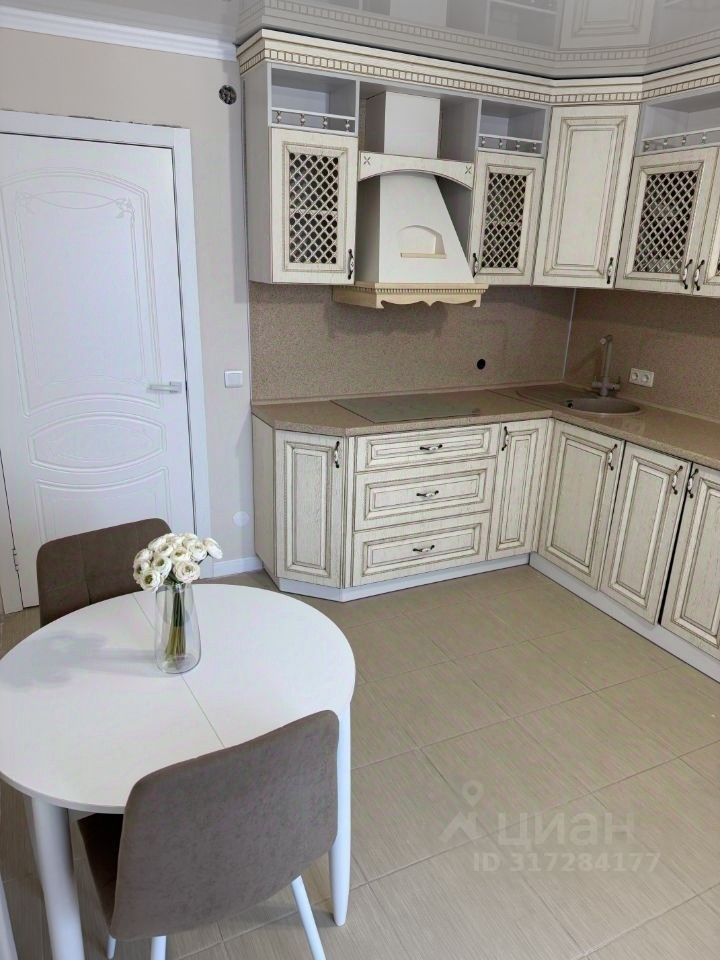 Квартира чистая и уютная. Просторная кухня-столовая оборудована современным кухонным гарнитуром с встроенной бытовой техникой: холодильник, вытяжка и индукционная варочная поверхность.
